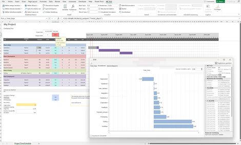 Soll trotzdem am Ziel von 65 Tagen festgehalten werden, ist anhand einer Tornado-Analyse ersichtlich, dass die Aktivitäten "Workflow" und "Testing" prioritär gesteuert werden sollten.