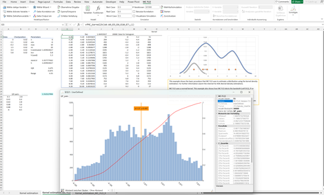 Kernel_estimation: Moderne Algorithmen - insbesondere im Machine Learning Bereich - machen von der Kerndichteschätzung Anwendung. Sie ist hat zum Ziel den "datengenerierenden Prozess" anhand der effektiv gemessenen Daten zu schätzen. Im Gegensatz zur klassischen Verteilungsanpassung ist der Kerndichteschätzer parameterlos und auch für eine geringe Anzahl Daten flexibel anwendbar.