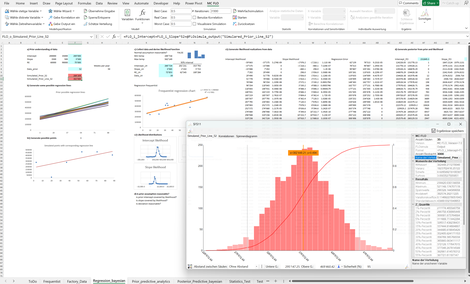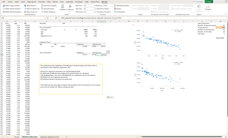 Factory Regression: Anhand einer einfachen, linearen Regression werden generative Verfahren als Treibermodelle vorgestellt. Idee: Es soll der Aufwand einer Maschine gemessenen werden, wobei der Schnittpunkt der Regression dem fixen Aufwand und die Steigung dem variablen Aufwand entspricht. Mittels Simulation werden a-priori Werte, somit Prognosen, vor Messung der Daten erstellt.
