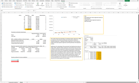 Median regression: Falls "Ausreisser" in der Stichprobe vermutet werden, kann das Konzept der Medianregression zum Tragen kommen. Im Gegensatz zu der klassischen Regression, bei der die "Kleinste-Quadrate" Methode zur Anwendung kommt, wird bei der Median Regression die absolute Abweichung zwischen den beobachteten und geschätzten Werten minimiert.