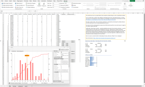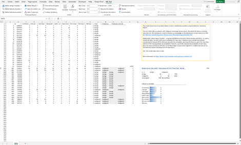 Naive Bayes: Auf der Bayesschen Statistik fussender Algorithmus zur Identifikation der Klassenzugehörigkeit ("Klassifizierung") von Beobachtungen, hier anhand von Daten zur Brustkrebsdiagnose.