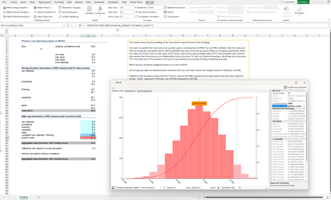 Mittels Simulation kann jedoch aufgezeigt werden, dass die Ambition in der Aggregation nicht der Summe der einzelnen Positionen entspricht. So lässt sich erklären, warum Budgets per Ende Jahr nicht ausgeschöpft oder Zielvorgaben - trotz exakter Umsetzung nach Plan - nicht eingehalten werden. Anders ausgedrückt: Wenn Sie unsichere Positionen addieren, dürfen Sie sich nicht auf die klassische Schulmathematik verlassen!