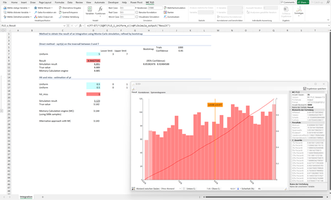 Das Beispiel kann mit der klassischen Monte-Carlo Simulation und mit Memory Calculation Engine von MC FLO nachvollzogen werden.